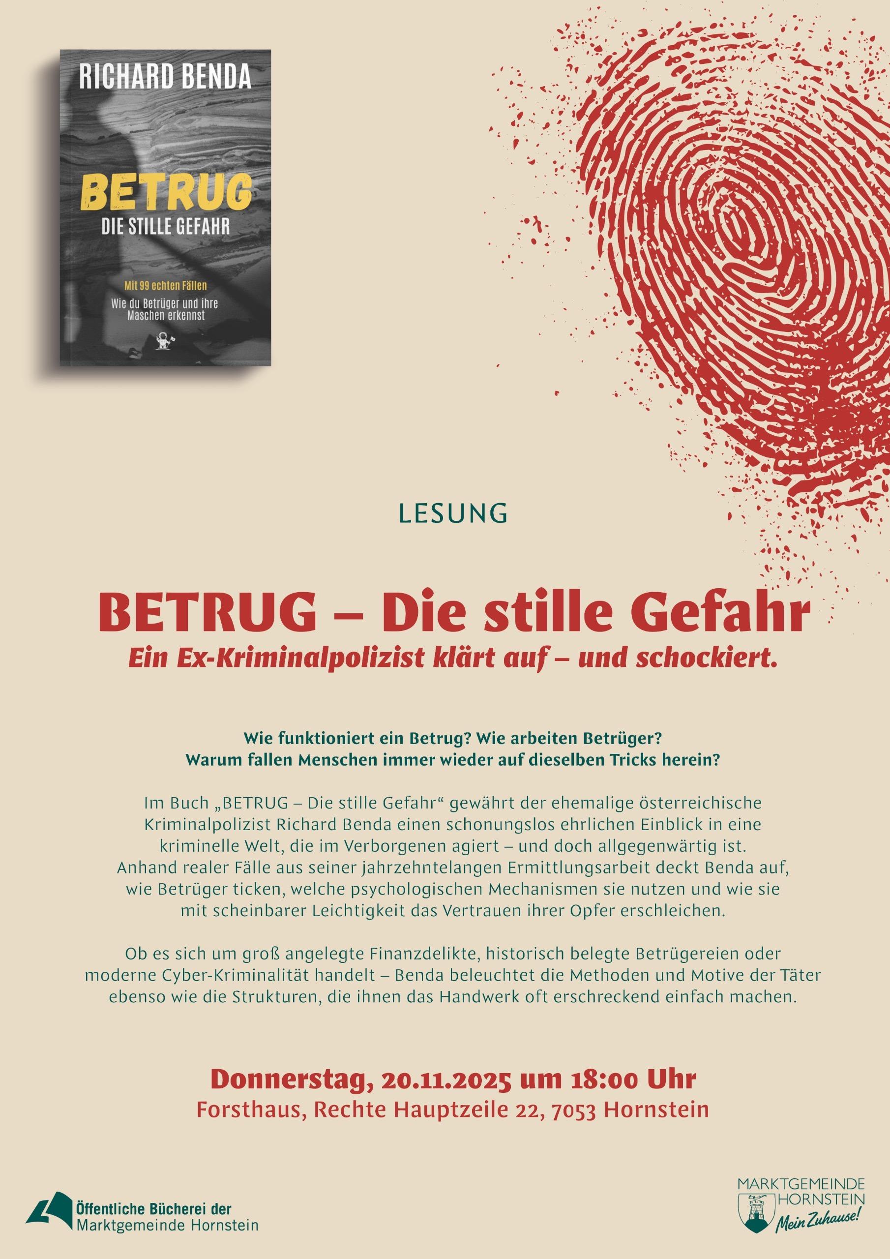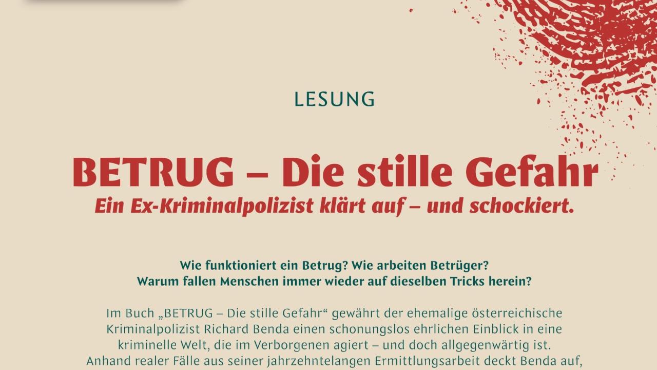 Lesung mit Richard Benda. Spannende Einblicke in die Welt des Betrugs