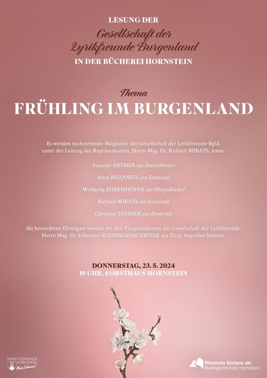 Fotos Frühling im Burgenland Lesung der Gesellschaft der Lyrikfreunde Burgenland in der Bücherei Hornstein