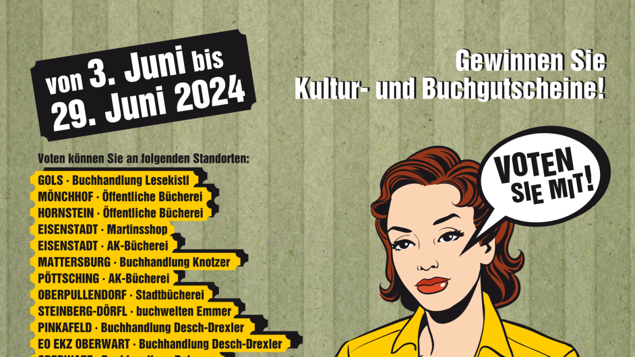 Mitwählen und gewinnen – 3. bis 29. Juni 2024 in ausgewählten burgenländischen Buchhandlungen und Bibliotheken!